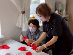 ご利用者さまには馴染の無い文化ではありますが、職員と一緒に楽しむ機会になると思い準備から楽しんでいます。