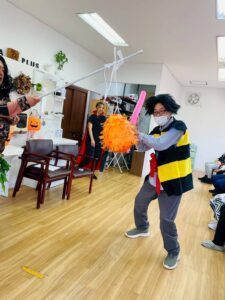 ピニャータ作りと並行して、ハロウィンゲームの準備もすすめます