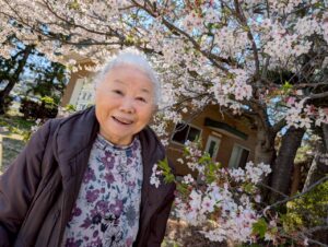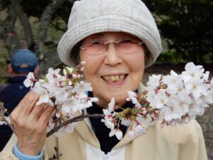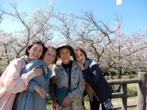 桜を見ながら転倒に注意し歩けるようにデイサービスでも歩行練習など力を入れ体力作りに励みました。